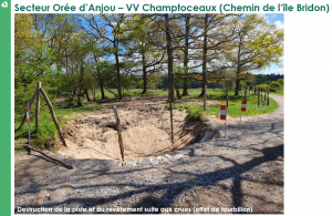 2/ la planification des travaux d’urgence pour rétablir des conditions de circulation. Des reprises de structure seront nécessaires (apports en matériaux, rechargement et compactage).