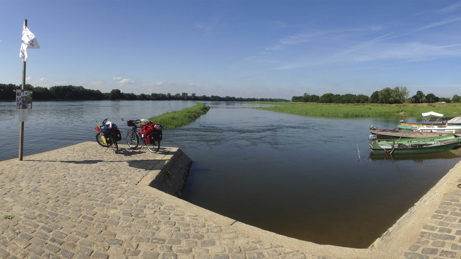 Nous sommes à Pouilly-sur-Loire assez rapidement. Sur le pont de la Loire, notre parcours à vélo traverse l’itinéraire que nous avons parcouru en 2013 jusqu’à Saint-Jacques-de-Compostelle.