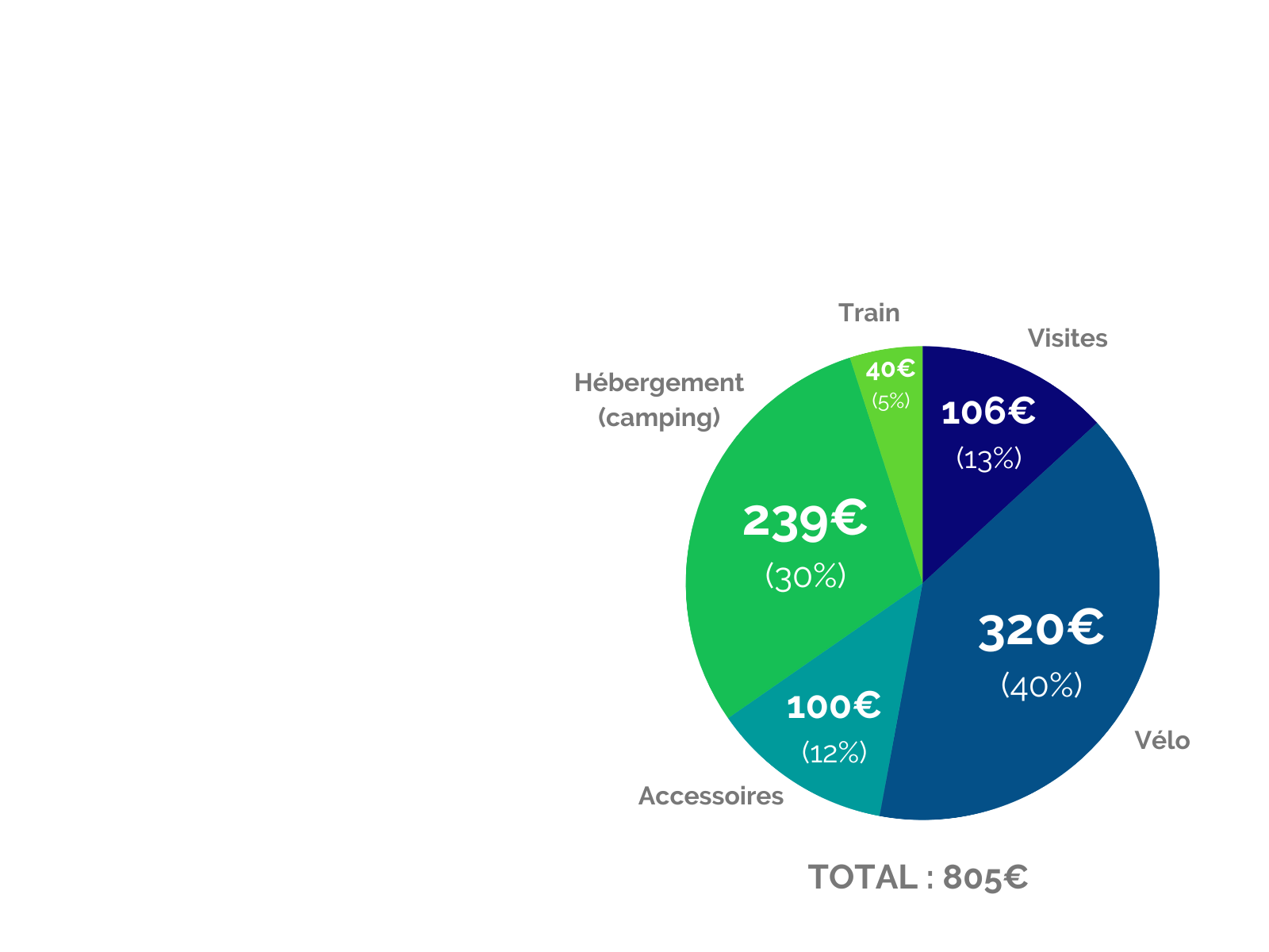 A côté, notre budget (hors restauration) avec l’achat d’un vélo et la restauration d’un second.
