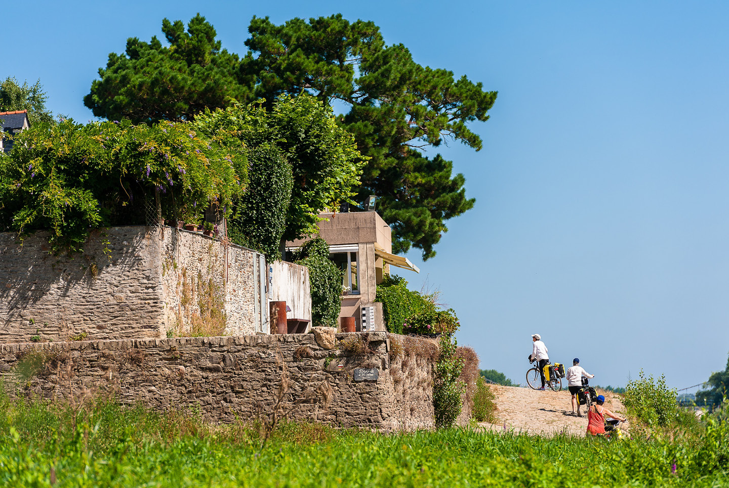 © E. Caracciolo Quelques coups de pédales supplémentaires vous feront rejoindre Trélazé et ses célèbres ardoisières. Franchissez l’Authion par le bac de la Chevalerie –mis en hivernage de novembre à mars- pour arriver aux Ponts-de-Cé : pour les plus courageux, une baignade est possible !! Changez de décor à Sainte-Gemmes-sur-Loire : un jardin méditerranéen peuplé de vignes, d’oliviers et de plantes aromatiques domine la Loire et vous offre un panorama exceptionnel.