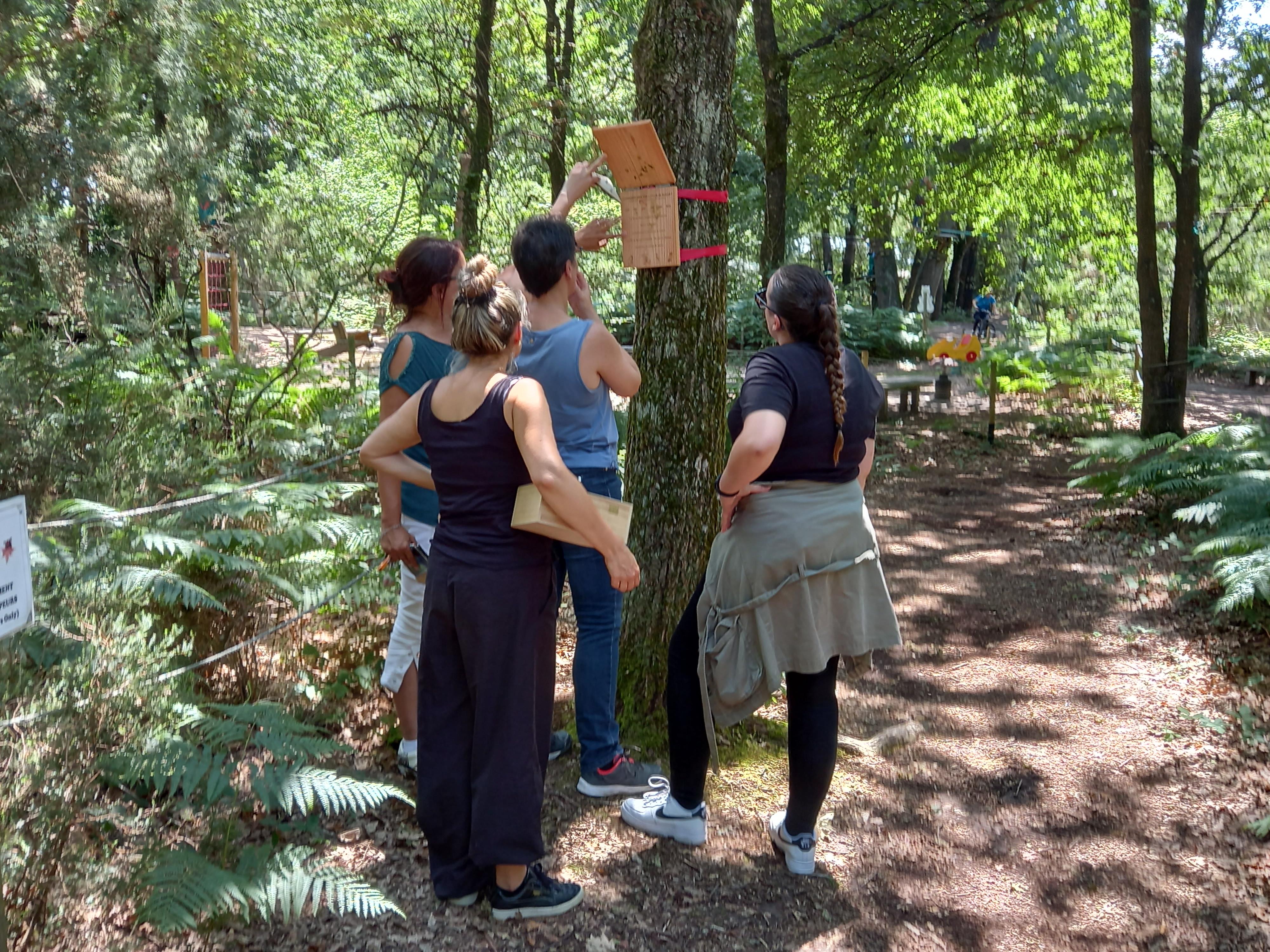 Par équipes de 8 au maximum (4 dans les arbres, 4 au sol) par départ de parcours, vous partirez dans les bois à la recherche des indices : groupes pouvant varier de 20 à 64 personnes en tout.