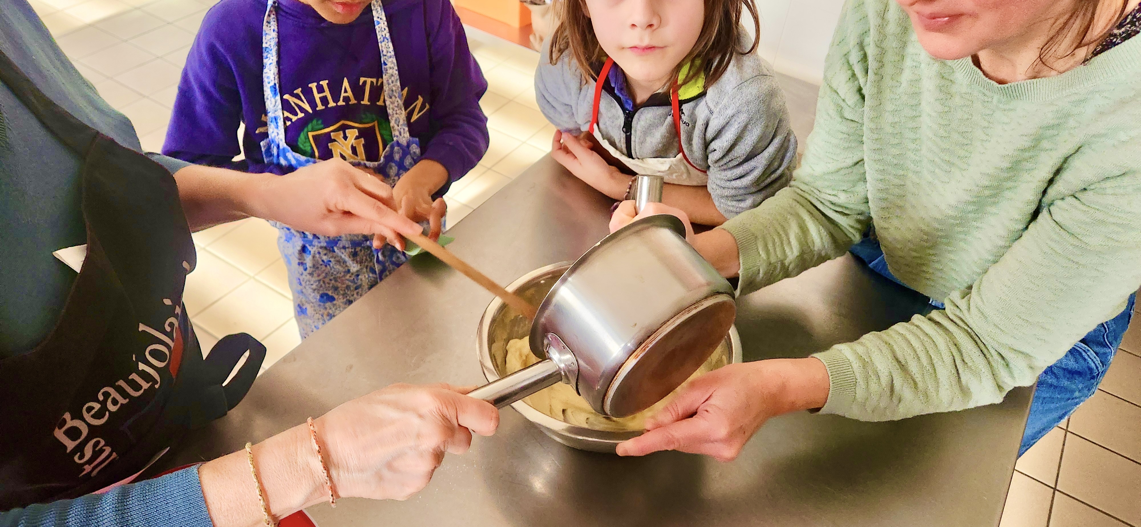 Dans une ambiance conviviale et ludique, petits et grands mettent la main à la pâte pour apprendre, s’amuser et éveiller leur créativité culinaire.