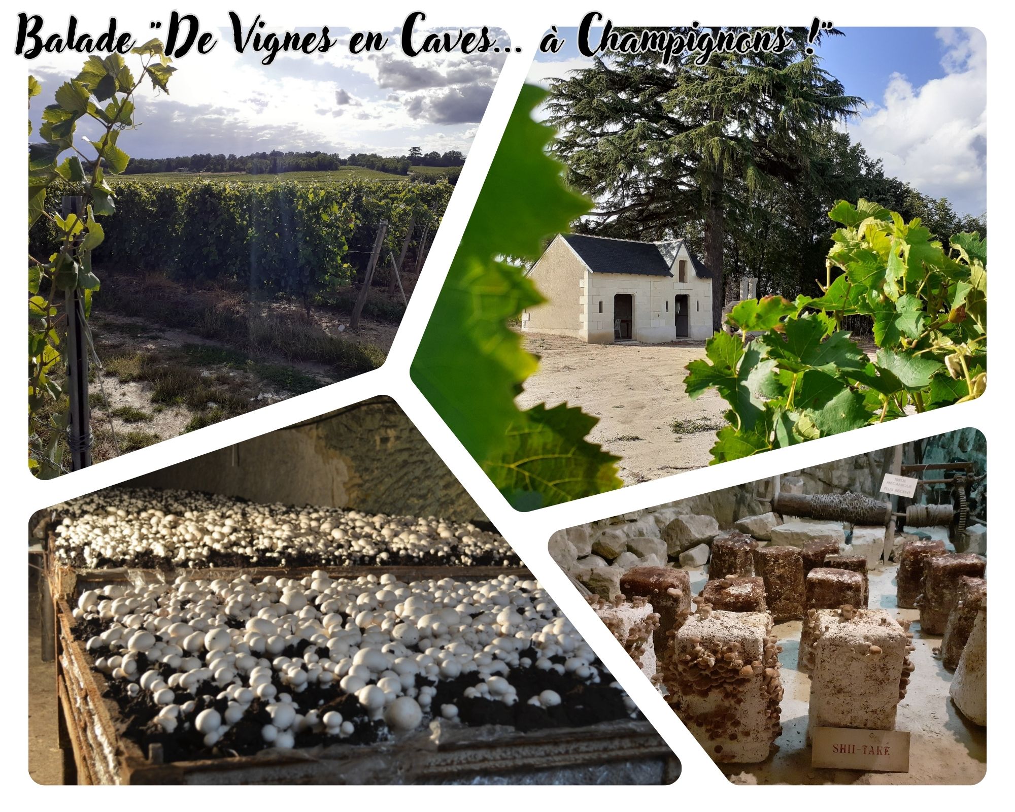 – Balade « De vignes en caves… à champignons ! », au Puy Notre Dame, 3h. Visite d’un vignoble et d’une champignonnière troglodyte traditionnelle.