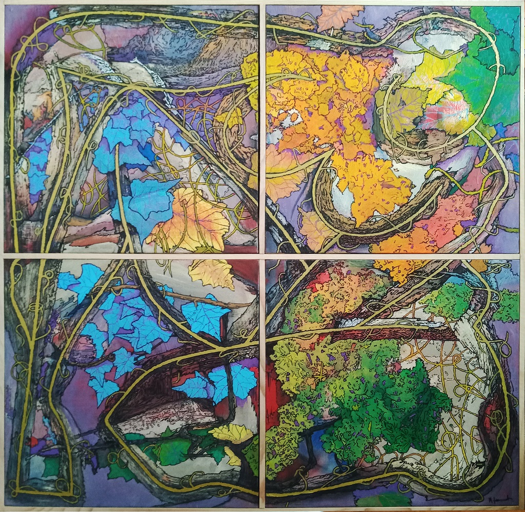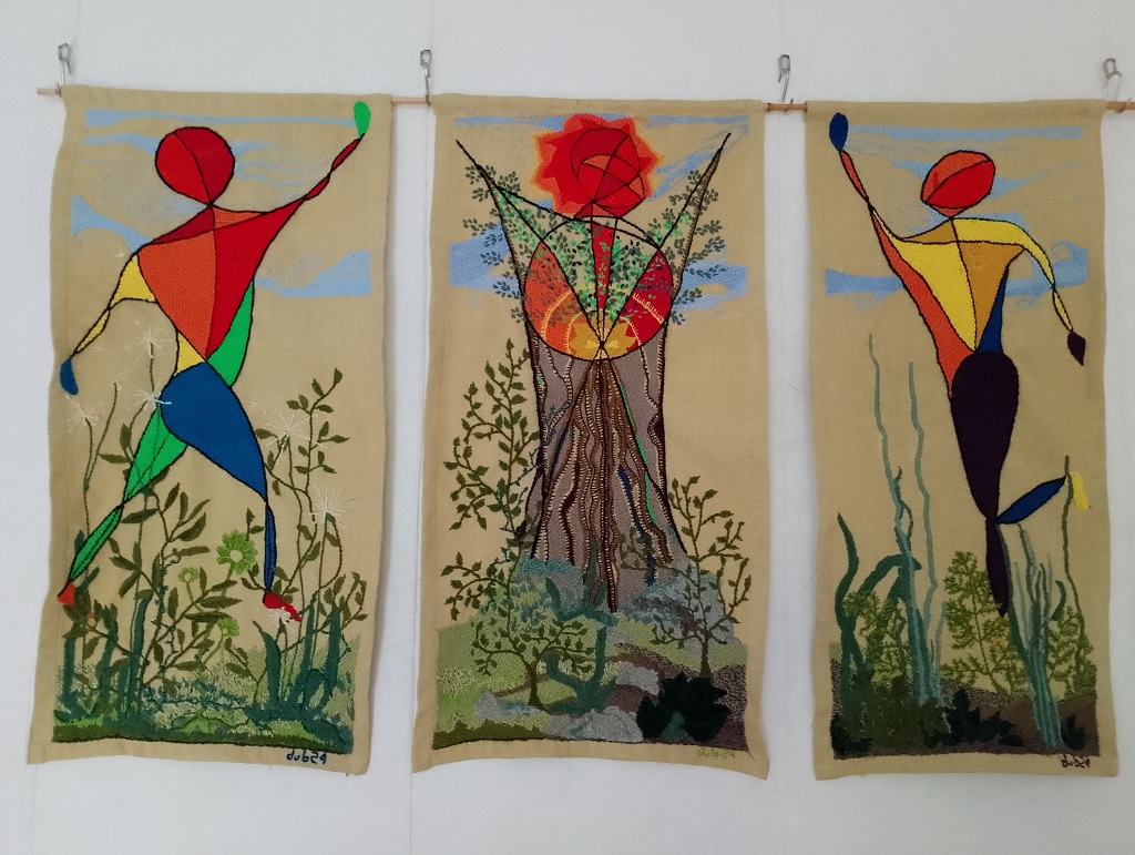 C'est un fil de couture ou de laine, promené jusqu'au Brésil où il prendra voix et couleurs. Il apprendra à oser, à expérimenter la matière textile, de façon totalement autodidacte. Des tapisseries au canevas, la recherche expérimentale mène à la tapisserie sur toile. Les laines tracent un dessin sans projet initial, façonné dans le langage intérieur d'une méditation.
