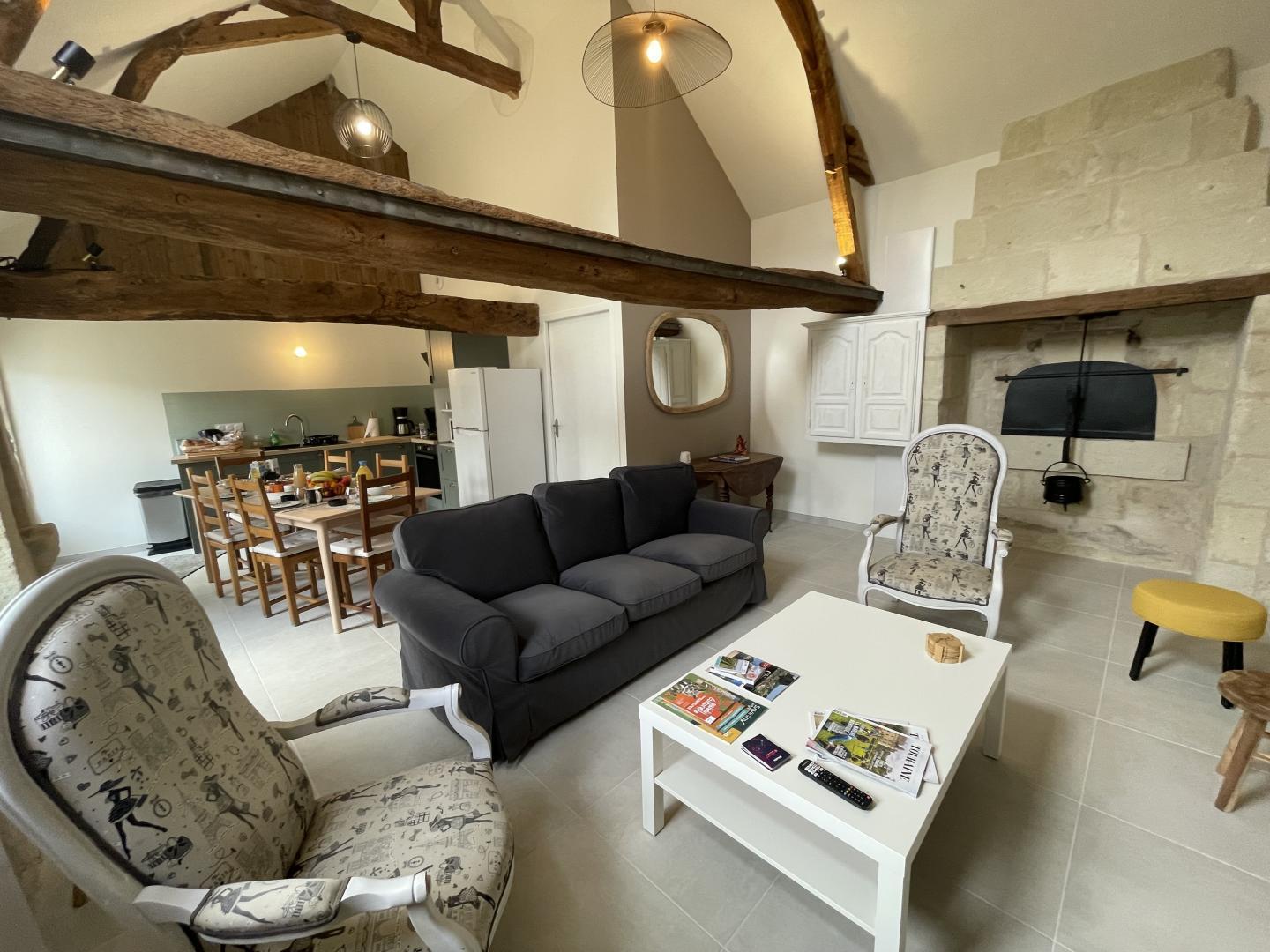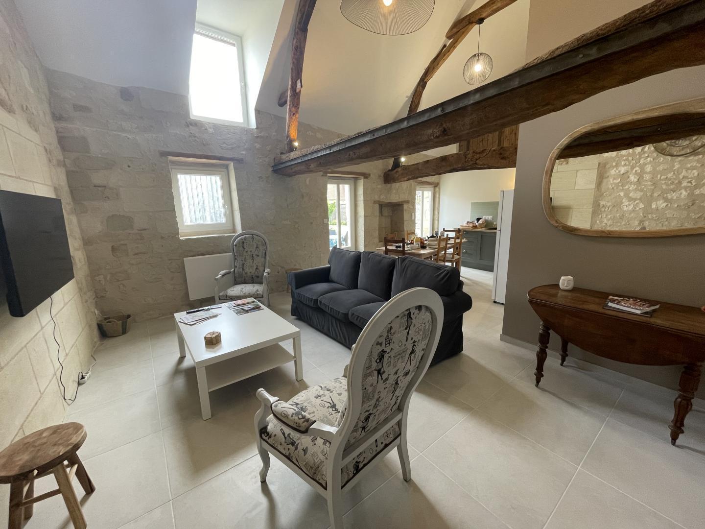 Nathalie et Franck adorent leur région et ils vous dévoileront sans doute quelques richesses secrètes à découvrir absolument ! Ils ont souhaité rénover cette ancienne demeure typique de la région de Chinon pour vous faire partager leur amour des vieilles pierres : votre gîte marie parfaitement le charme de l'ancien et le confort moderne et vous apprécierez l'espace cuisine, le coin salon mis à la disposition des hôtes. Vous pourrez, lorsque le soleil pointe son nez, déjeuner ou dîner à l'extérieur pour profiter pleinement de la tranquillité du lieu. Si les fabuleux châteaux sont proches, les vignerons vous attendent également pour un moment partagé autour d'une dégustation, les itinéraires vélo, dont la boucle de la Loire à Vélo vous permettront de profiter de cette nature si généreuse qui vous entoure. Chinon, Saumur, Langeais mais aussi Candes-St-Martin et Monsoreau (classé parmi les Plus Beaux Villages de France) situés à quelques minutes vous attendent.