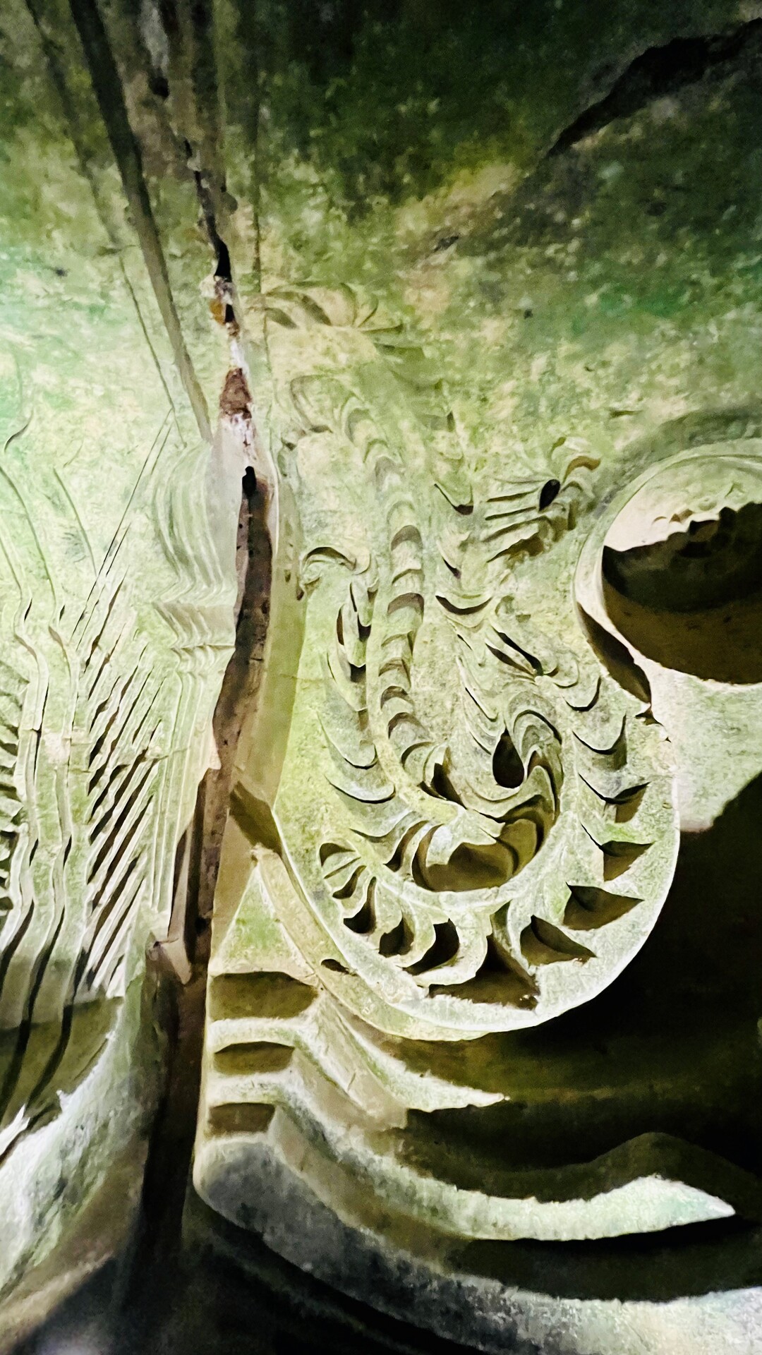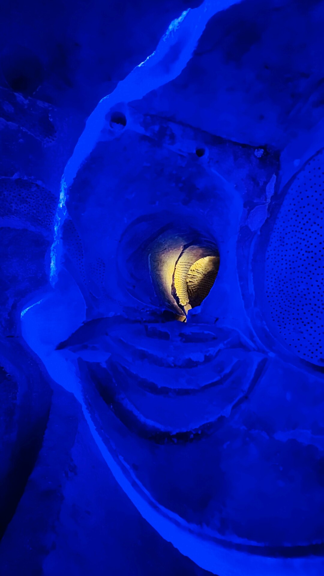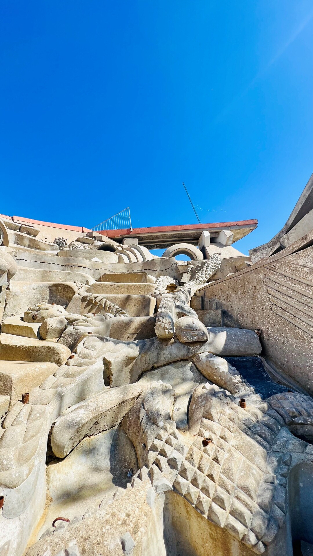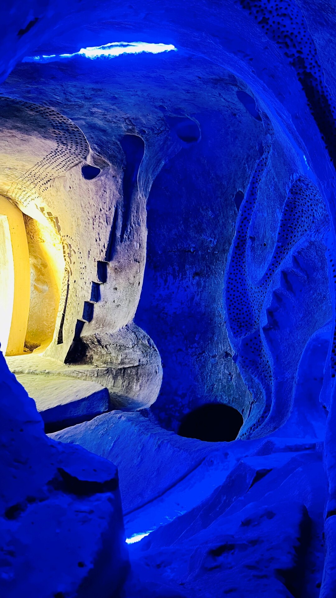 L’œuvre est composée de deux espaces simultanés : l’un souterrain entièrement creusé dans le tuffeau, l’autre à ciel ouvert, modelé et moulé dans le béton.