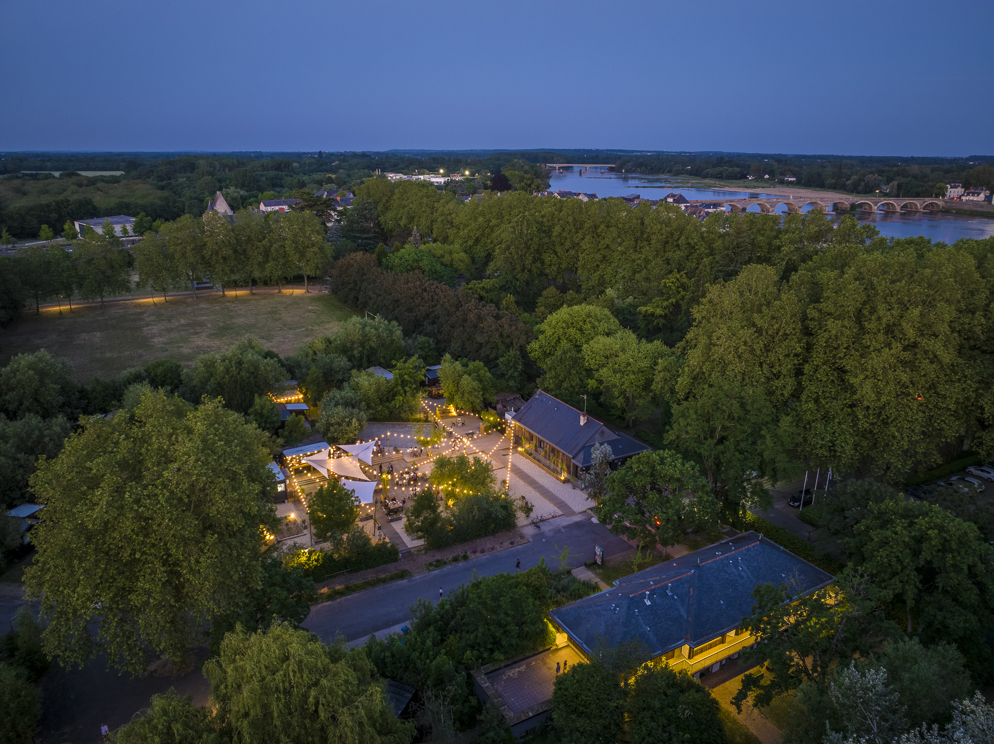 Au cœur du camping Slow Village Loire Vallée, la Guinguette « La Gabare » vous accueille pour vous restaurer, prendre un verre ou danser.