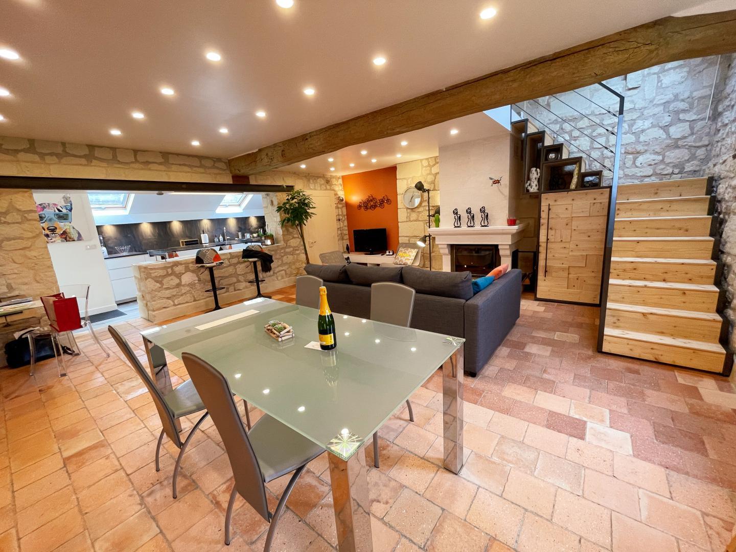 De grands noms du Val de Loire vous entourent, à quelques pas d'ici, et vous n'aurez que l'embarras du choix pour satisfaire vos envies de découvertes et de rencontres. Cécile et Pascal ont souhaité vous proposer un lieu de villégiature de très grande qualité : pari parfaitement réussi ! Quel plaisir de franchir la porte du gîte où la décoration, l'ambiance, le crépitement de la cheminée dès les premières journées d'automne complétés du confort si appréciable offert par la présence d'une salle d'eau pour chaque chambre vont vous séduire d'emblée. Le magnifique jardin et sa piscine pour les belles journées ensoleillées, les nombreux jeux de plein-air, la terrasse face à la piscine vont être la garantie d'un séjour synonyme de succès. A proximité de Saumur (son Cadre Noir, son château), de la magnifique et incontournable Abbaye Royale de Fontevraud, de Chinon et sa Forteresse Royale, vous découvrirez aussi Candes-St-Martin et Monsoreau, classés parmi les Plus Beaux Villages de France.