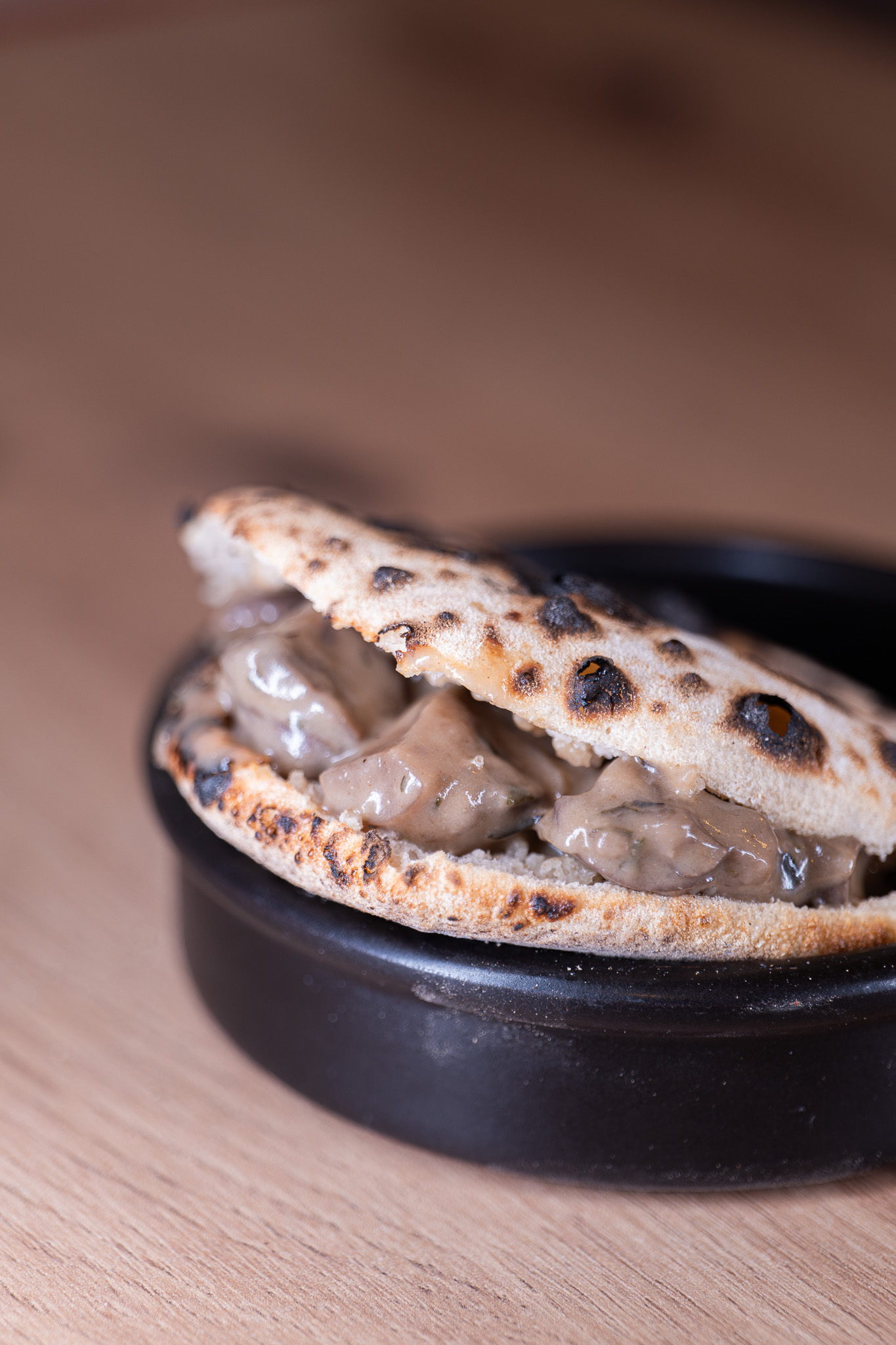 Dans notre cocon convivial et chaleureux vous pourrez déguster ce plat local : une petit boule de pain qui se creuse au four à bois et que l'on garnit de garnitures locales.