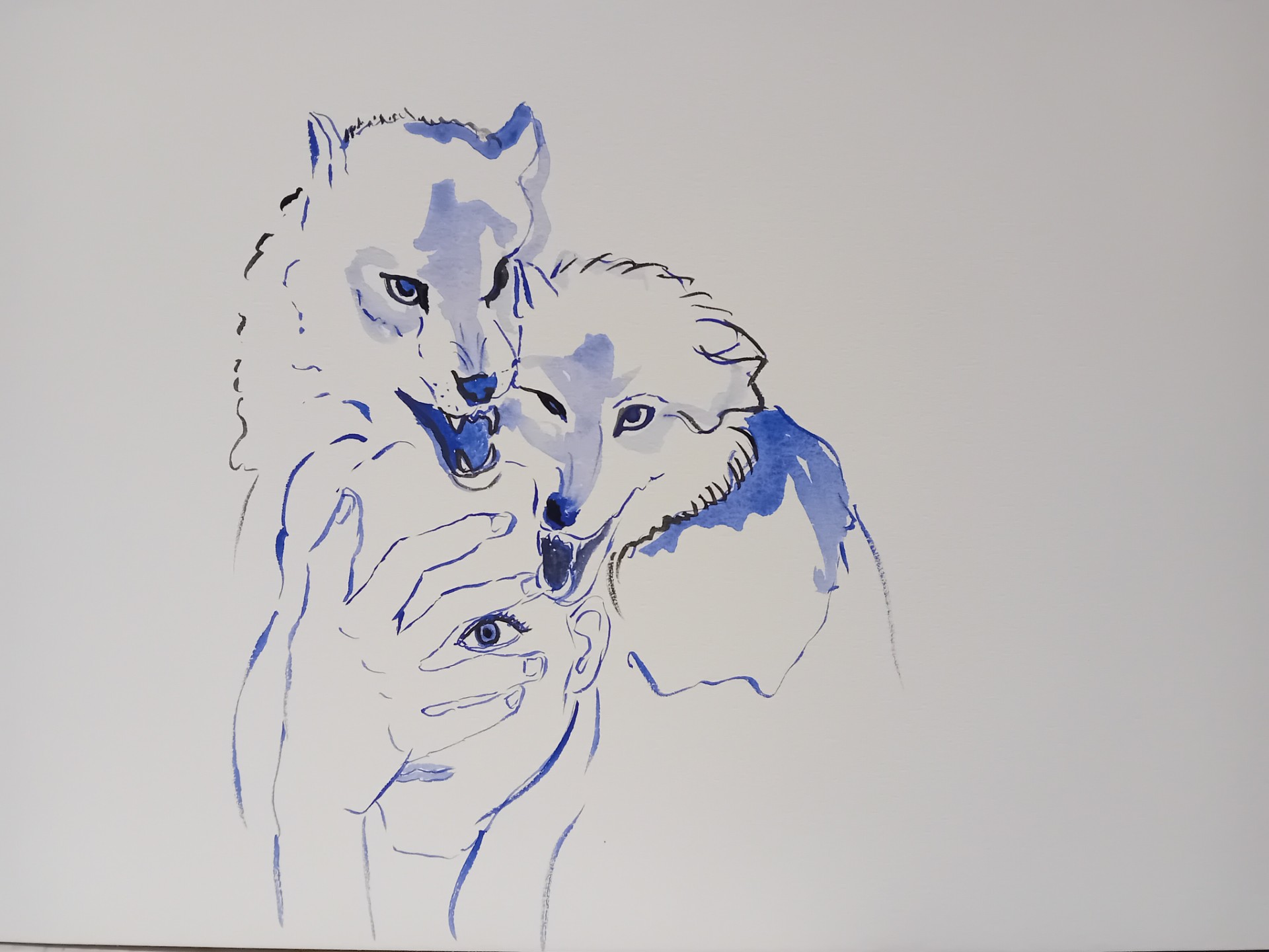 Le loup est associé dans l'imaginaire à la bestialité, même dans les contes pour enfants. Mais c'est aussi un comparatif avec la maladie mentale où les épisodes de maladie transforme les attitudes et réactions de l'humain. Cette série de peinture explore ces cas par des métaphores visuelles.