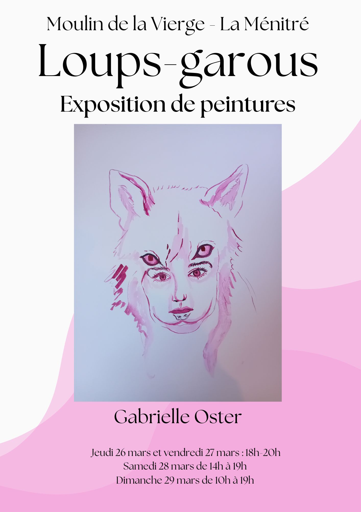 Peinture à l'eau sur le thème des Loups-garous qui se déroulera du 26 au 29 mars 2026 au Moulin de la Vierge - salle du Meunier 3 rue du Moulin à La Ménitré.