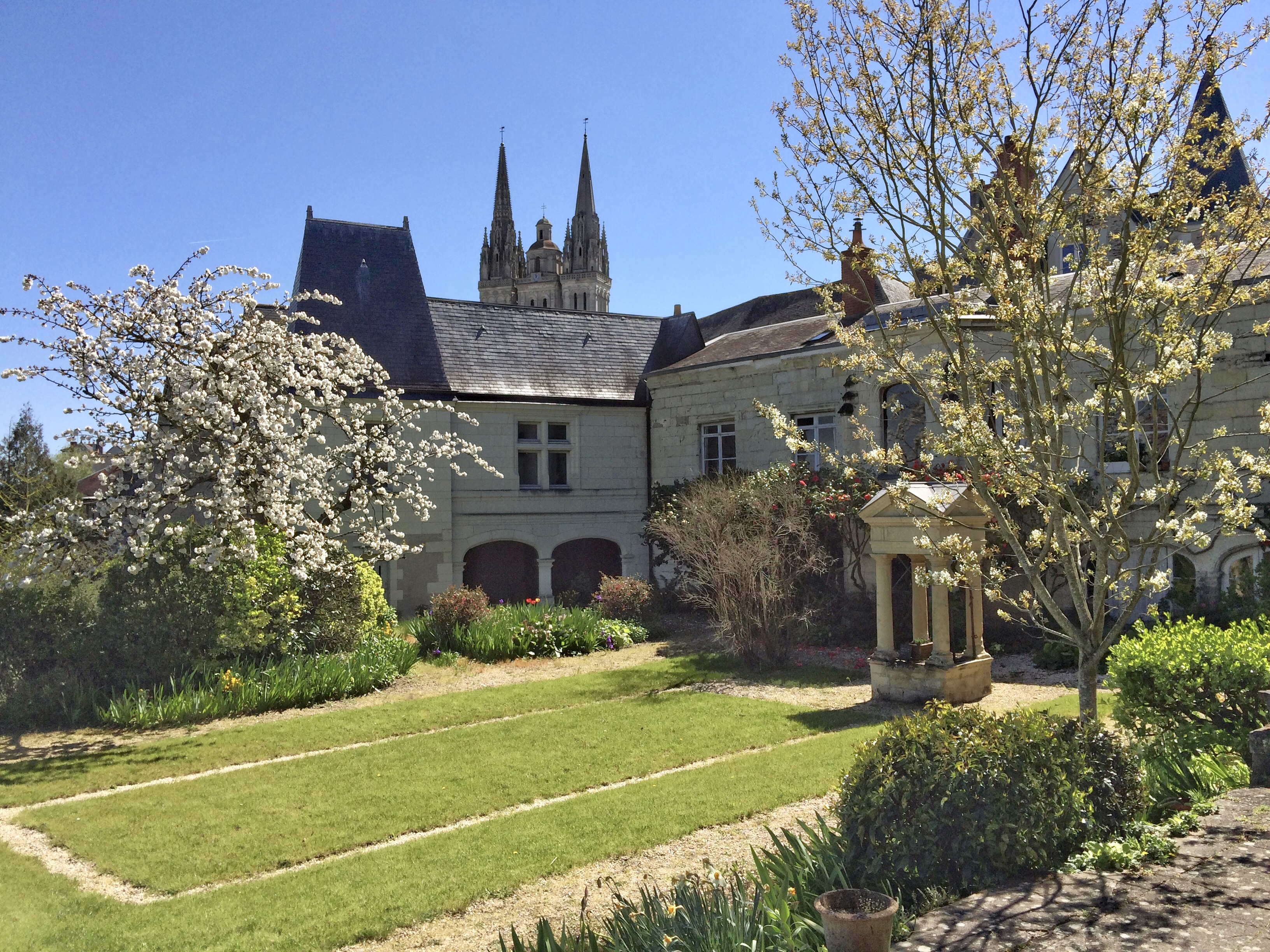 Située à l'aplomb du rocher, la maison canoniale possède l'un des plus grands terrains de la vieille cité d'Angers. L'habitation dispose d'un côté cour et un côté jardin.