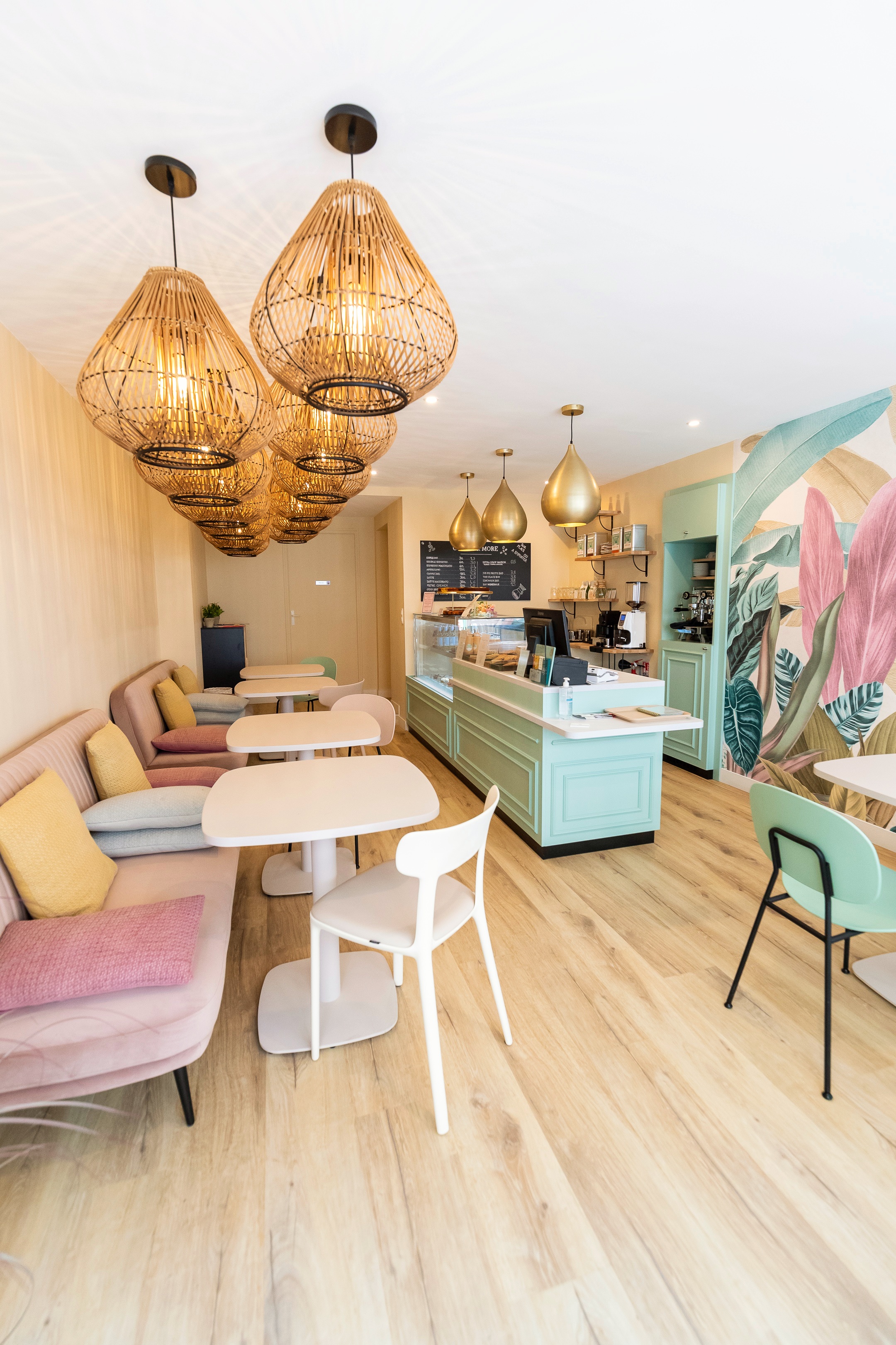 Vente sur place et à emporter de pâtisseries entièrement réalisées sur place de manière artisanale, de thé et cafés de spécialité torréfiés sur Angers, de boissons fraîches bio. Ambiance chaleureuse et cocooning.