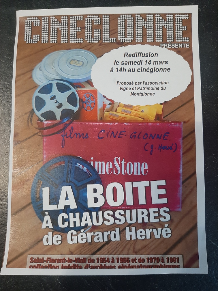 L'association Vignes et Patrimoine du Mont Glonne vous propose la rediffusion du film "La boite à chaussures" de Gérard Hervé, le samedi 14 mars à 14h au Ciné Glonne à Saint-Florent-le-Vieil